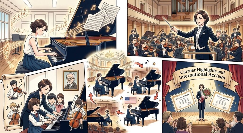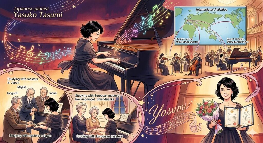 国際舞台でも積極的な活動を展開しました。ドイツやスイスでの演奏会、アメリカのワイオミング大学での2台ピアノによるコンサート、ザグレブ・ソロイスツとのモーツァルト、大阪シンフォニカー管弦楽団とのチャイコフスキーのピアノ協奏曲第1番共演など、その活動記録は国内にとどまりません。