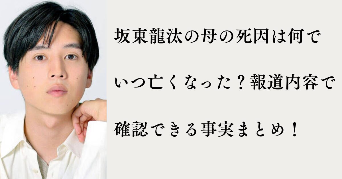 そんな坂東龍汰さんをめぐって、「母親が亡くなった」という情報がネット上で話題になっています。