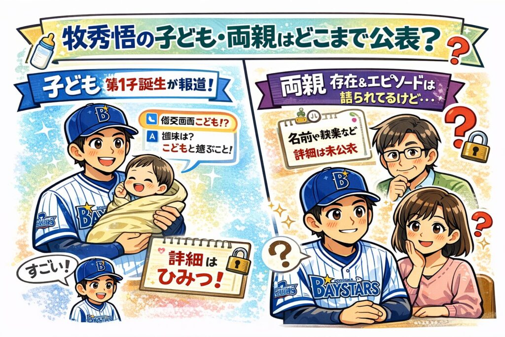 - 子どもは**第1子誕生(2024年)**が報道され、球団公式Q&Aでも“子どもがいる前提”の記載が確認できる。