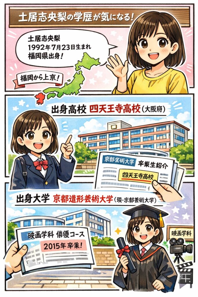 土居志央梨さんは京都造形芸術大学 映画学科 俳優コース卒(5期生)とされています