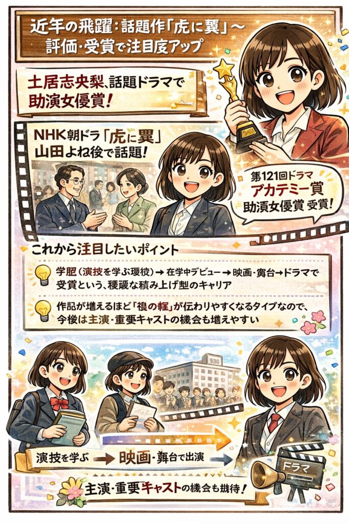 • 学歴(演技を学ぶ環境)→在学中デビュー→映画・舞台→ドラマで受賞という、綺麗な積み上げ型のキャリア