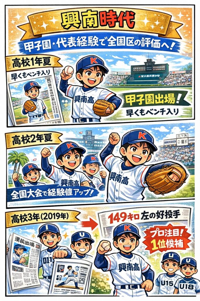 - 興南時代は、夏の甲子園出場(複数回)や年代別代表などの経験を重ね、全国区の評価へ