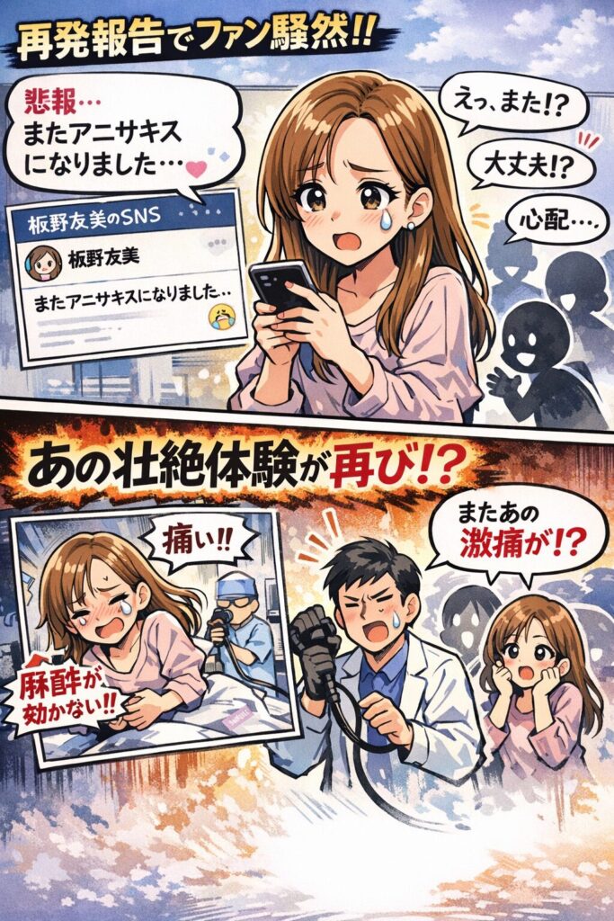 当時の発信では、検査・処置の痛みについて「麻酔も効かなかった」とまで表現しており、再発報告=“あの痛みが再び?”と連想されやすい構図です。