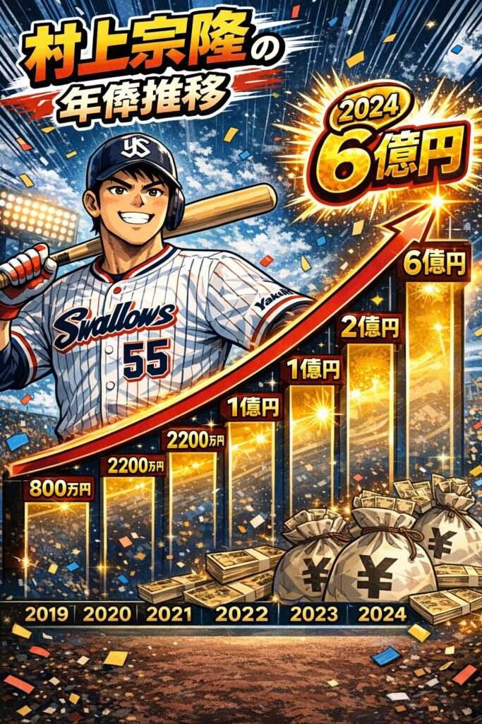 村上が2023年に年俸6億円へ到達し、その後3年固定になったのは、評価が“上がり続ける段階”から“価値が安定している段階”に入ったサイン。