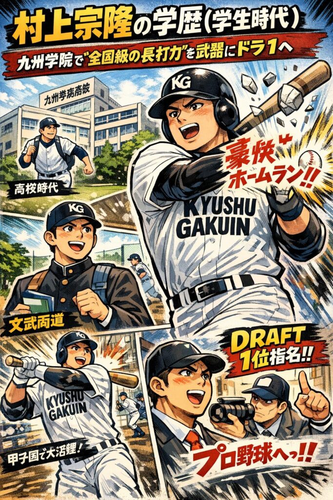 • 村上宗隆の学歴(出身校)は九州学院高校で整理できる(NPBプロフィールでも確認可能)。