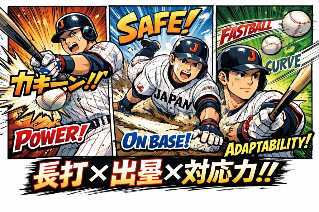 世界基準で見ても「長打がある」は強い。ただし国際舞台では徹底的に弱点を突かれます。そこで必要になるのが、次の2つです。