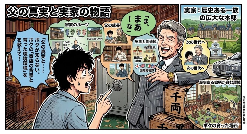 - 父親は金持ち: 間違いなく富裕層であり、そのエピソードは芸のネタにもなっている。