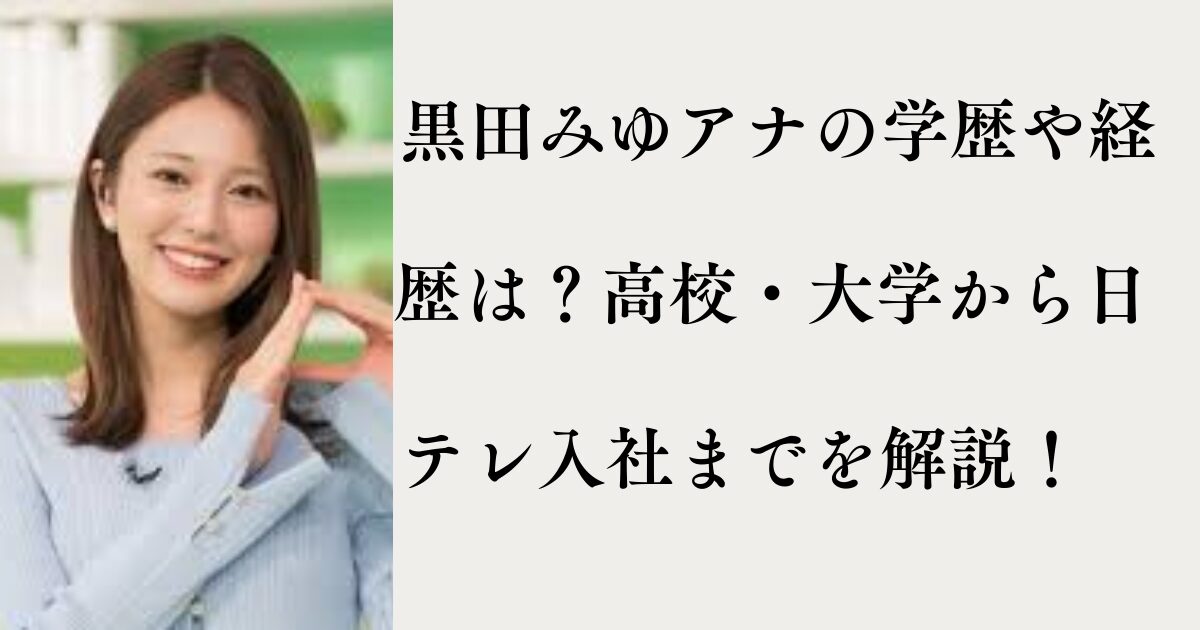 今回は、「黒田みゆアナの学歴や経歴は?高校・大学から日テレ入社までを詳しく解説!」というテーマで、黒田みゆアナの歩みを整理しました。