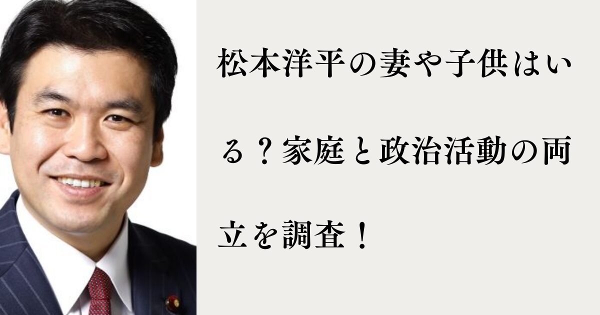 この記事では、松本洋平さんの家族構成(妻・子供)や、家庭と政治活動の両立についてまとめていきます!