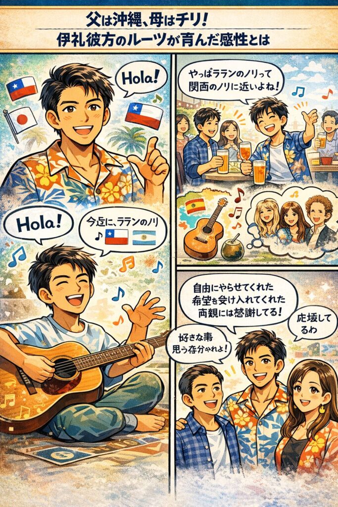 伊礼彼方さんの魅力を語るうえで外せないのが、やはり父・沖縄、母・チリ、そして本人はアルゼンチン生まれという背景です