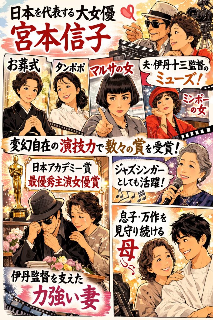 夫である伊丹十三監督の作品には欠かせないミューズであり、伊丹映画のほぼ全ての作品で主演を務めました。