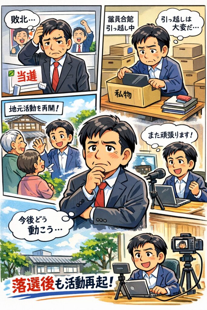 落選後も完全引退ではなく、別の立場から政治との関わりを維持しようとしている点は、今後を占ううえでも注目ポイントといえます。