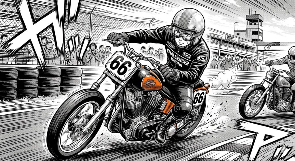 彼が選んだ相棒は、荒々しい鼓動感が魅力のショベルヘッドを搭載したレーサーでした。
