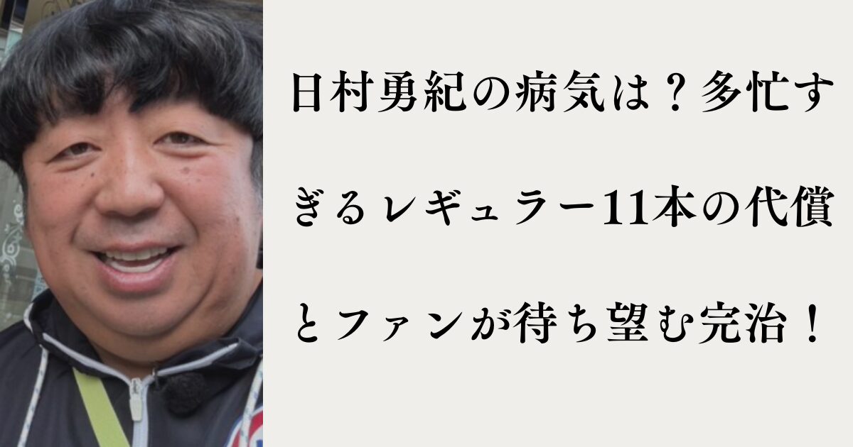 日村勇紀の病気は?多忙すぎるレギュラー11本の代償とファンが待ち望む完治への道