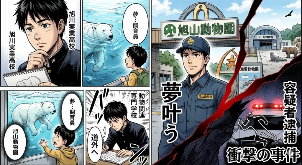 • 出身高校:旭川実業高校 地元・旭川市内の私立高校を卒業。学生時代は、真面目で目立たないタイプだったという声がある一方で、動物に対する情熱は人一倍強かったとされています。