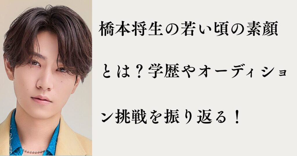 橋本将生の若い頃の素顔とは?学歴やオーディション挑戦を振り返る!