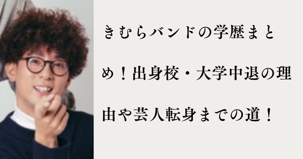 M-1優勝で一気に注目度が上がった「たくろう」。そのツッコミとしてコンビを支えるのが、独特の芸名が印象的な きむらバンドさんです。 今回は「学歴(出身校)→大学中退の理由→芸人への転身」という流れで、エピソードを時系列で整理していきます。 そこ... -