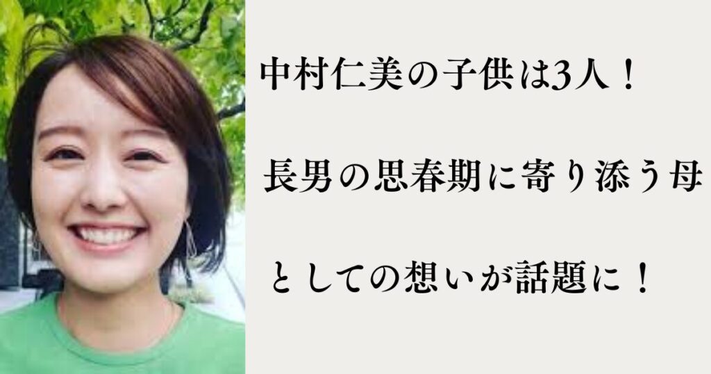 中村仁美の子供は3人!長男の思春期に寄り添う母としての想いが話題に!