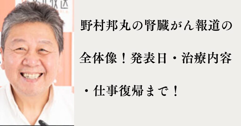 野村邦丸の腎臓がん報道の全体像!発表日・治療内容・仕事復帰まで!