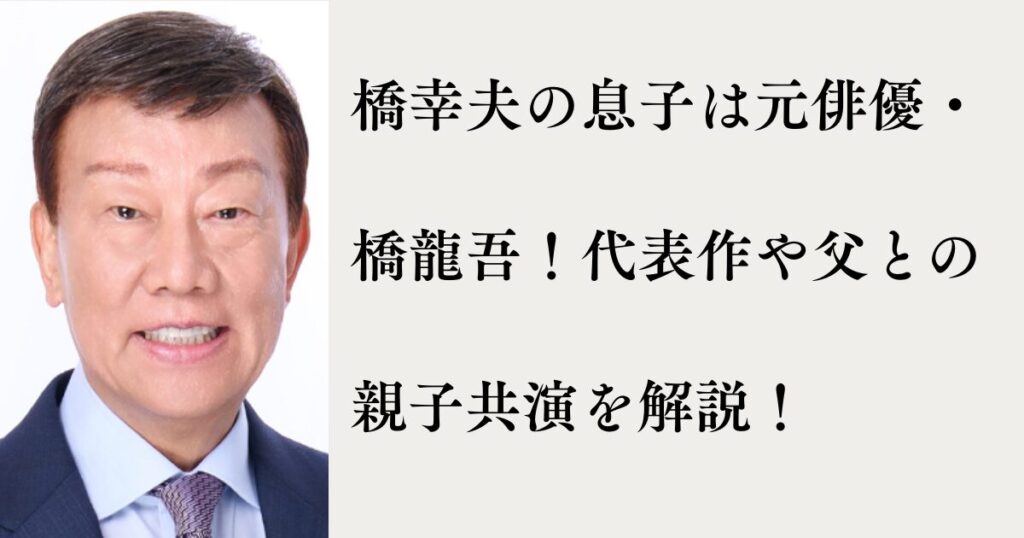 橋幸夫の息子は元俳優・橋龍吾!代表作や父との親子共演エピソードを解説!
