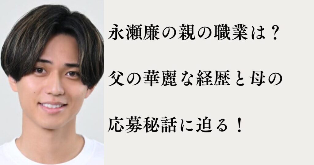永瀬廉の親の職業は?父の華麗な経歴と母のジャニーズ応募秘話に迫る!