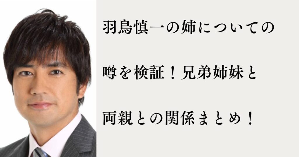 テレビ朝日の朝の顔として人気を集めるアナウンサー・羽鳥慎一さん。 軽快な進行と柔らかい人柄で幅広い世代から支持を受けていますが、その一方で「姉がいるらしい」という噂がネット上で囁かれているのをご存じでしょうか。 今回は、羽鳥慎一さんの姉に... -