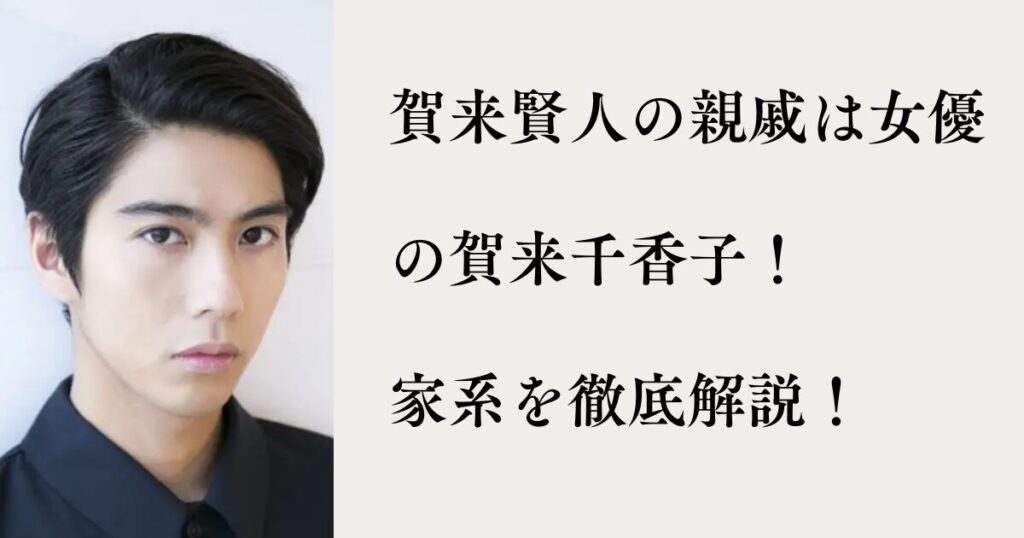 俳優として数々のドラマや映画に出演し、コミカルな役からシリアスな役まで幅広くこなす賀来賢人さん。 実は彼の親戚には、長年日本の芸能界で活躍する大女優・賀来千香子さんがいます。 この記事では、賀来賢人さんと賀来千香子さんの関係、さらに豪華す... -