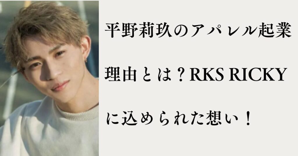 俳優・アーティストとして注目を集める平野紫耀さんの弟であり、音楽活動も行う平野莉久さん。 実は彼、音楽だけでなくアパレルブランド「RKS RICKY(リクス・リッキー)」の経営者でもあります。 兄の芸能活動と比較されがちですが、莉久さん自身は「ファ... -