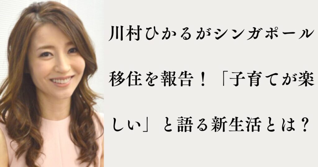 タレントの川村ひかるさん(46)が自身のブログで、今年からシンガポールへ移住していたことを報告しました。 英語が得意でないながらも海外生活に挑戦し、「日本よりも子育てが楽しい」と語る新たな発見とは? この記事では、川村さんの移住の理由・シン... -