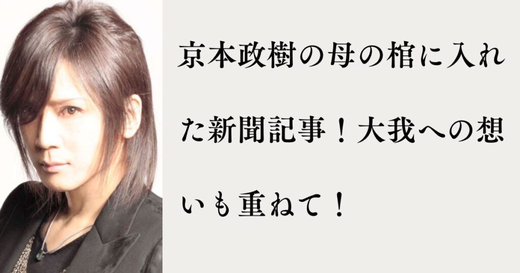 京本政樹の母の棺に入れた新聞記事!大我への想いも重ねて!