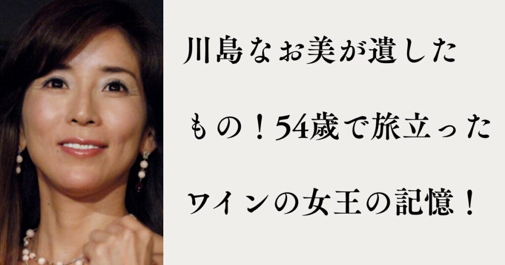 2015年9月、胆管がんのためわずか54歳でこの世を去った女優・川島なお美さん。 没後10年を迎えた今なお、多くのファンや関係者から惜しまれる存在であり続けています。 生前の川島さんは「私の体はワインでできている」という名言を残し、女優としてだけで... -
