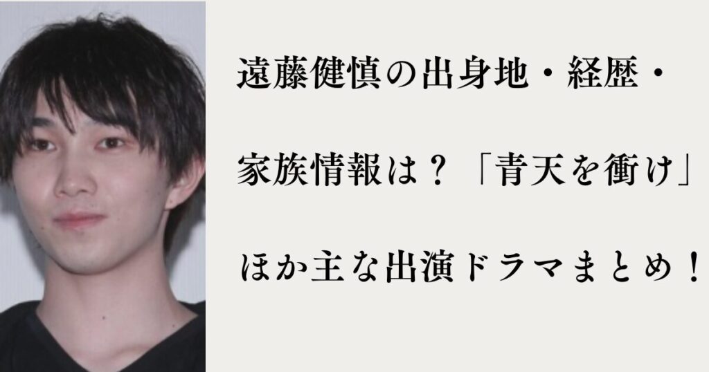 若手俳優として注目を集める遠藤健慎(えんどう けんしん)さん。 大河ドラマ『青天を衝け』をはじめ、多彩な作品に出演し、存在感を高めています。 この記事では、公表されている出身地や経歴、家族情報を整理するとともに、代表的な出演ドラマをまとめて... -