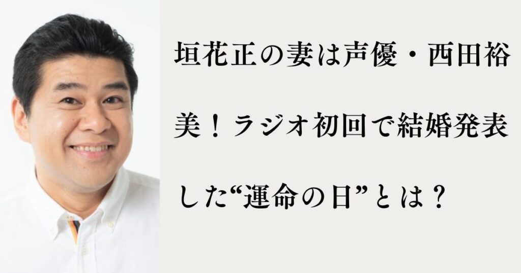 垣花正の妻は声優・西田裕美!ラジオ初回で結婚発表した“運命の日”とは?