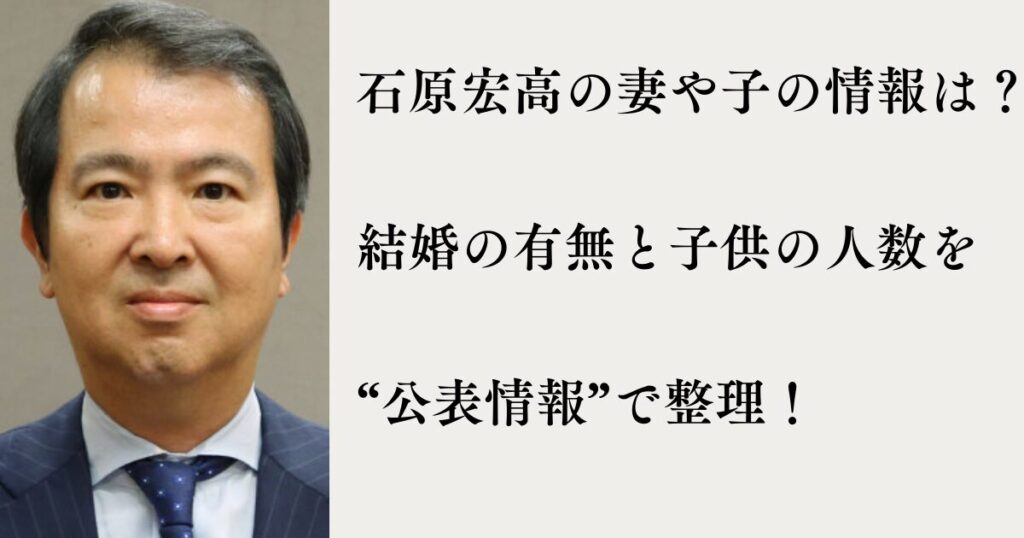 「石原宏高 妻 子供」で検索して出てくる情報って、意外と“断定しづらい”ものが多いんですよね。 そこで本記事では、本人・政党・公的に参照できるプロフィールなど公表情報の範囲に絞って、「結婚しているのか」「子どもは何人なのか」を“分かる/分か... -