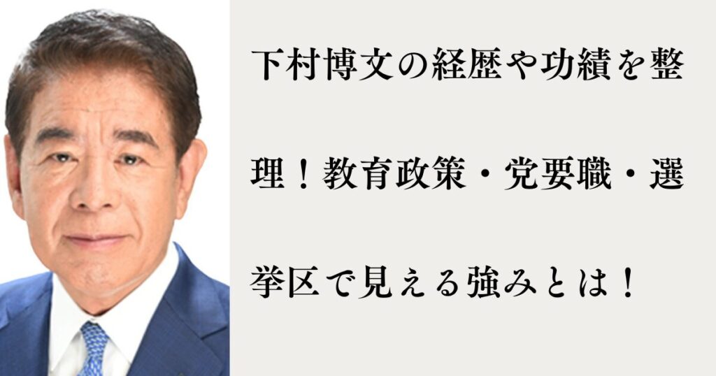 下村博文の経歴や功績を整理!教育政策・党要職・選挙区で見える強みとは!