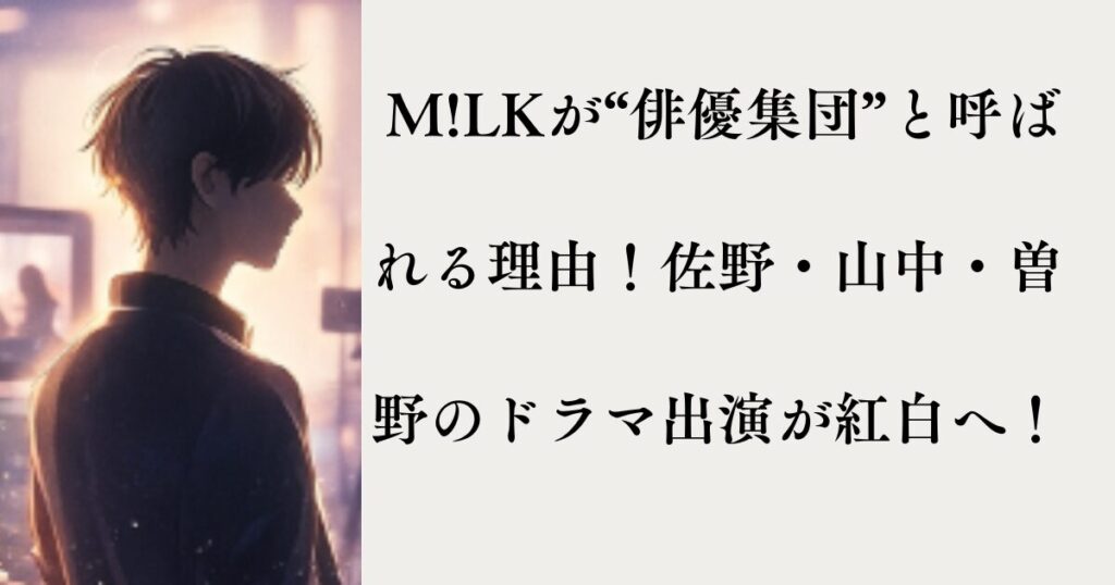 M!LKが“俳優集団”と呼ばれる理由!佐野・山中・曽野のドラマ出演が紅白へ!