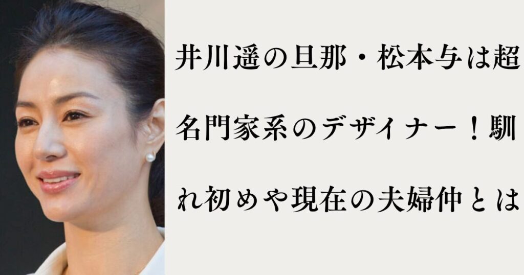 独自の透明感と大人の色気で、同性からも圧倒的な支持を得ている俳優・井川遥さん。 プライベートでは2006年に結婚されていますが、そのお相手が日本を代表するファッションデザイナー、松本与(まつもと あたう)さんであることは有名です。 実は松本さん...