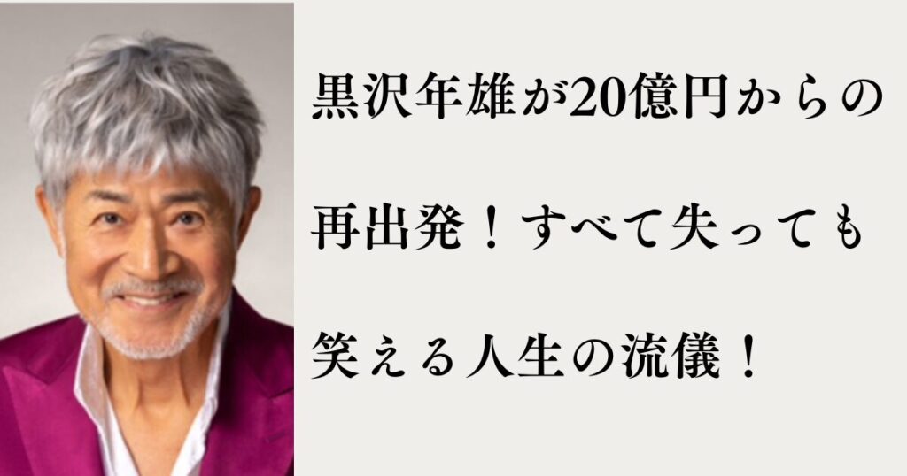 黒沢年雄が20億円からの再出発!すべて失っても笑える人生の流儀!