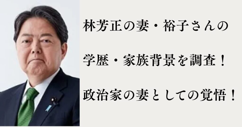 外務大臣や防衛大臣を歴任し、政界でも重要なポジションを担ってきた林芳正さん。 その陰には、知性と品格を併せ持つ妻・林裕子(はやし・ゆうこ)さんの存在があります。 本記事では、裕子さんの学歴や家族背景に注目し、「政治家の妻としてどんな覚悟を...