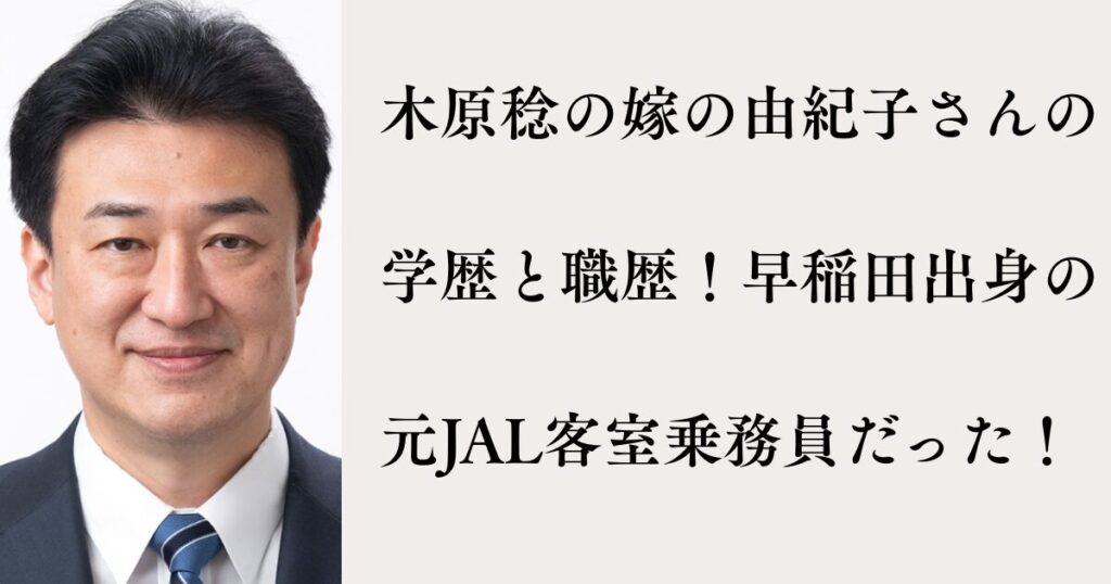 政治の世界で活躍する木原稔議員。 その背後で、静かに夫を支える存在として注目を集めているのが妻・木原由紀子さんです。 実は彼女、早稲田大学卒の才女でありながら、元・日本航空(JAL)の国際線キャビンアテンダントという華やかな経歴を持つ女性。 ...