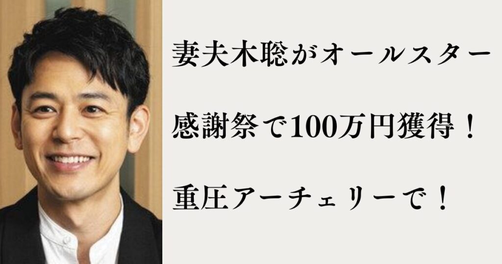 10月4日に放送されたTBSの大型特番『オールスター感謝祭2025秋』で、俳優の妻夫木聡さんが番組名物企画「重圧アーチェリー」に挑戦し、見事100万円を手にしました。 歴史ある人気企画での“初の快挙”ということもあり、大きな話題となっています。 そこで今...