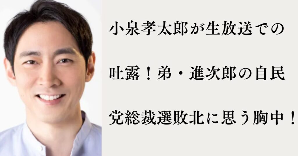 小泉孝太郎が生放送で吐露!弟・進次郎の自民党総裁選敗北に思う胸中とは!