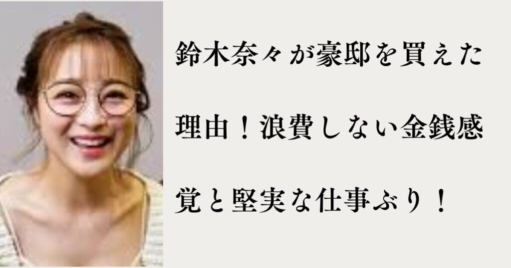 明るく元気な“おバカキャラ”で一世を風靡したタレント・鈴木奈々さん。 バラエティ番組を中心に数々のメディアに出演し、多くの視聴者に笑顔を届けてきました。 そんな彼女が最近、驚きのカミングアウトをしました。それは―― 3億円の豪邸を購入した という... -